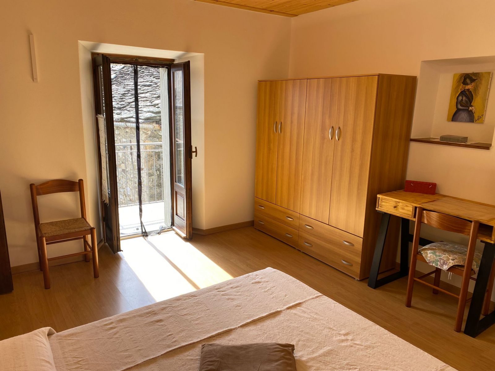Die Wohnung befindet sich im EG eines typischen Dorfhauses von Livo. Die Lage ist sehr ruhig, in der Nachbarschaft sind andere Dorfhäuser. Zur Wohnung gehören 2 Schlafzimmer, ein komfortables Bad mit Waschmaschine, ein Wohnzimmer mit integrierter Küchenzeile und Kamin und ein Balkon mit Essplatz und wunderbarem Seeblick. Die Besitzer haben die Wohnung frisch renoviert, einige der Möbel sind aus Pinienholz geschreinert, andere sind schön aufgearbeitete Stücke aus der guten alten Zeit.